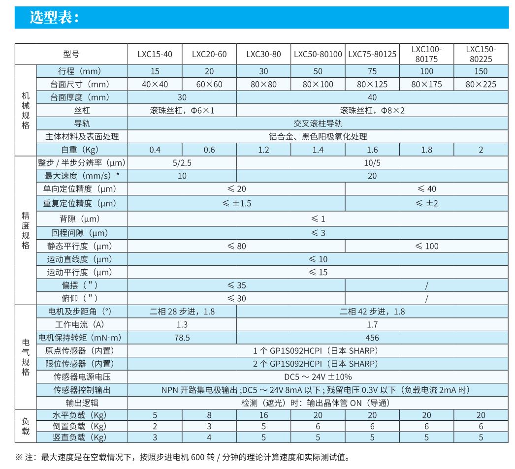 ▶采用小导程滚珠丝杠,标配二相步进电机(可选配五相步进电机),耐用性好;